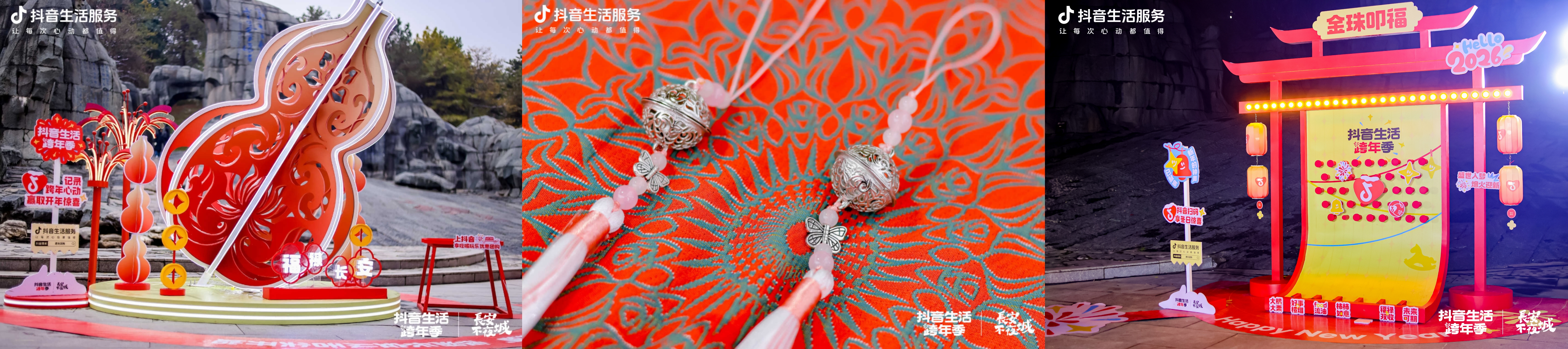 作为承载西安传统年味的核心场景,大唐芙蓉园在1月1日迎来了抖音生活服务与长安灯会的首次携手,共同打造了极具辨识度的主题灯组,一条长达70米的璀璨灯廊在胡店街区南侧主干道惊艳亮相,迅速成为游客必到的打卡圣地。
