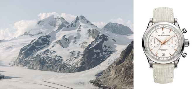 Hannes拍摄的冰川之白与白色款马利龙飞返计时码表 (Manero Flyback)
