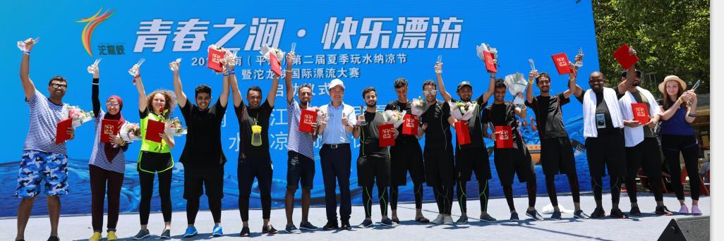 本次国际漂流大赛吸引了来自全球各地数十位户外运动爱好者踊跃参与,他们当中有俄罗斯美女选手,有意大利帅哥,还有来自也门、俄罗斯,印度、波兰、埃及、乌兹别克斯坦、喀麦隆等国的留学生,众多不同肤色、不同性别的“歪果仁”集体亮相,是为沱龙峡开漂10年以来之仅见。