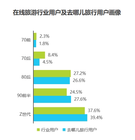 从用户画像看,去哪儿旅行90年及以后的年轻用户比例高于整体,品牌具备年轻化特征,该群体也是旅行主力。从整体数据看,Z时代已成为去哪儿用户的主力,占比近4成,高于行业整体水平。此外,去哪儿用户中有孩家庭比例相对更高,将带动更多旅行消费场景。